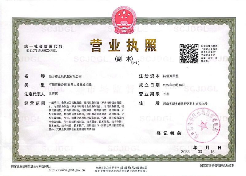 金晨機(jī)械始終秉持“誠(chéng)信經(jīng)營(yíng),誠(chéng)信服務(wù)”的理念,貫徹精良制造、誠(chéng)信經(jīng)營(yíng)的理念,始終以產(chǎn)品質(zhì)量為目標(biāo)不斷前行。公司設(shè)立營(yíng)銷、技術(shù)、售后團(tuán)隊(duì),致力于保障客戶的設(shè)備良好使用。